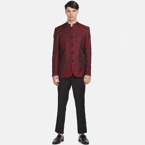 Men Maroon Printed Bandhgala Blazer