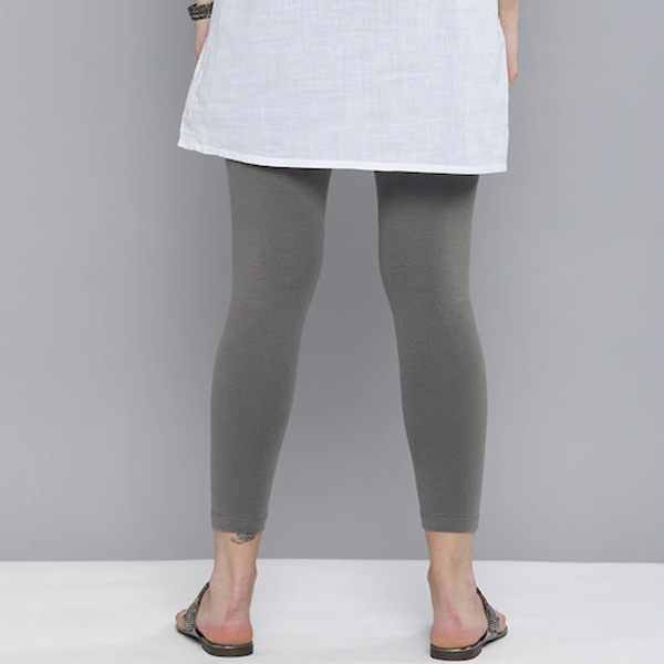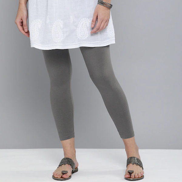 Grey solid churidar-length leggings has an elasticated waistband and slip-on closure
