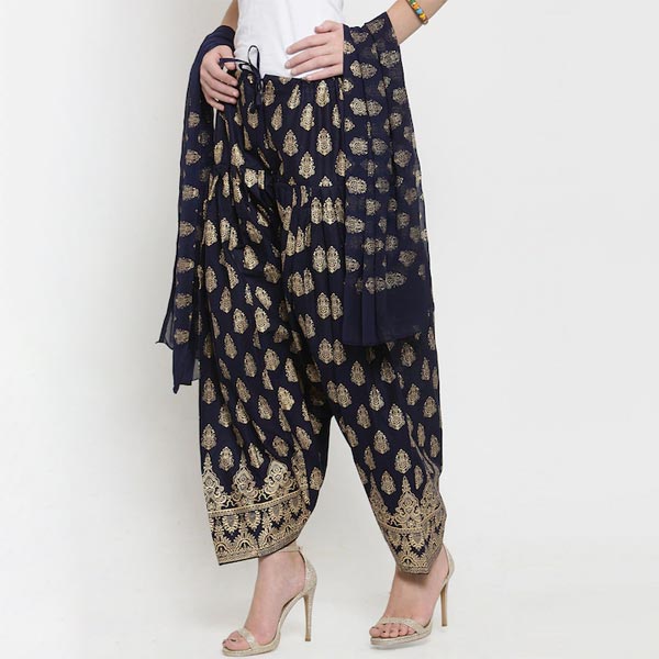 Women black & Gold-Toned Block Printed Salwar & Dupatta Set