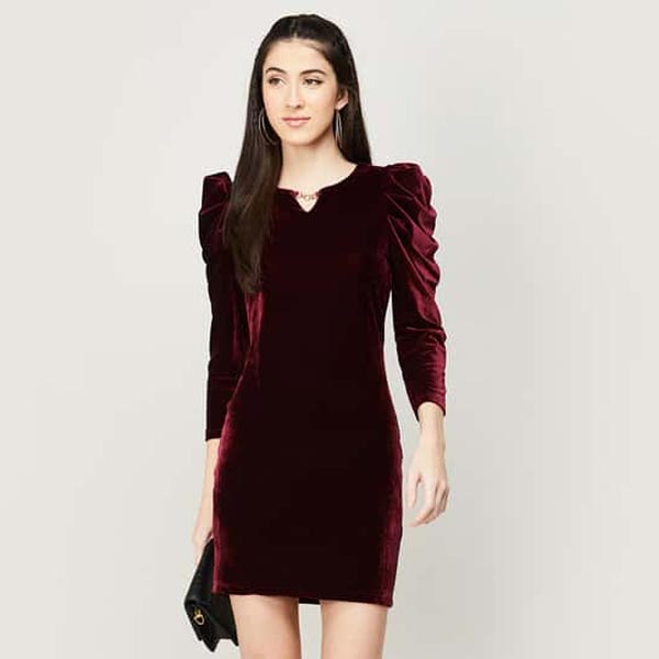 Amp up your style with this bodycon dress, beautifully detailed with a solid tone, 3/4th sleeves, embellished keyhole neckline, and slim fit. Disclaimer: Please check the size guide before you buy. You may need one size bigger than other popular brands. (If you usually fit into Size S of other popular brands you may need Size M).